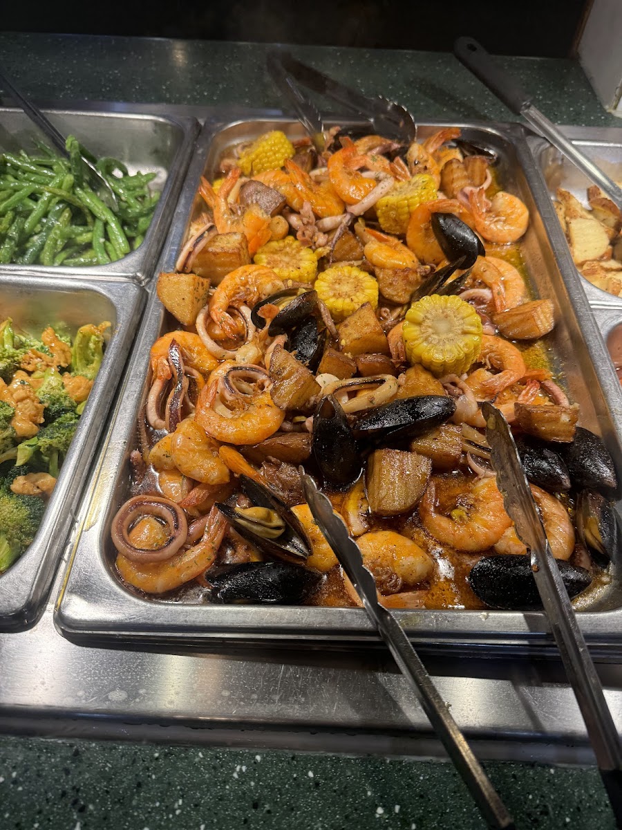 The dining experience is as casual and comfortable as it gets. The staff is attentive without being overbearing, quickly clearing plates and refilling drinks with a smile. The spacious seating area accommodates families, couples, and large groups alike, making it an ideal spot for everything from weekday lunches to weekend family dinners. The interior is bright and clean, and despite the steady flow of customers, the buffet lines move quickly. Many online reviews mention how affordable the prices are, especially given the impressive selection of dishes and the consistent freshness of the food.